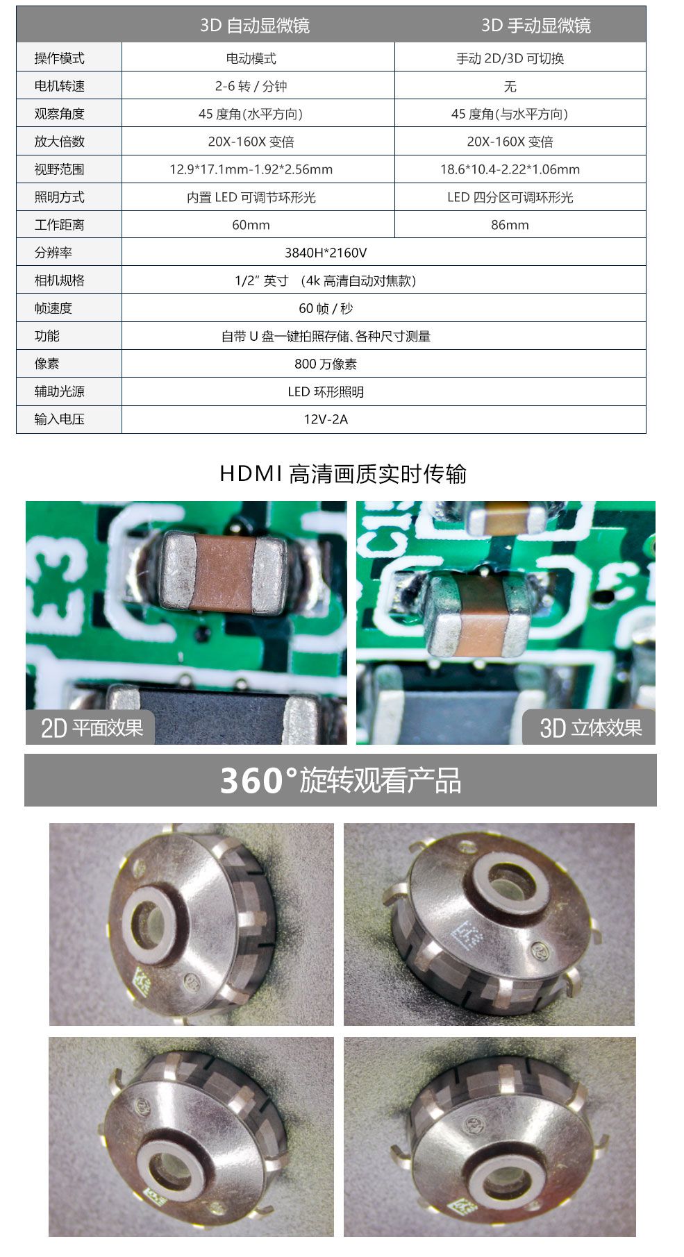 3D自动/手动电子视频显微镜