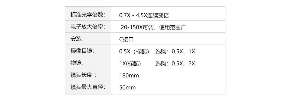 经过多层镀膜,镀有特殊膜层的光学部件,形成清晰明亮且平坦的图像。连续变倍,定格定倍,可选配同轴光源,可选配微调,可选配CCD接头,可选配物镜。