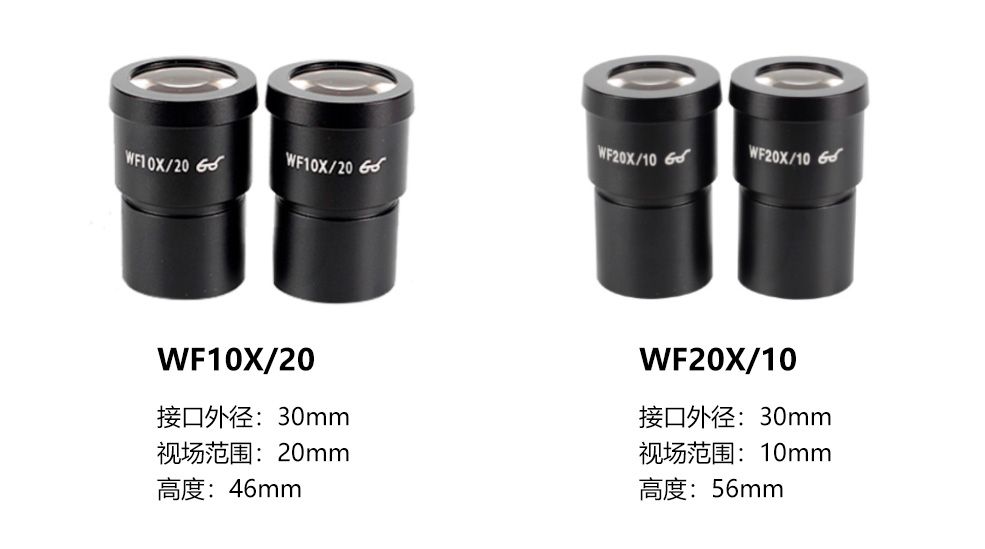 目镜接口外径30mm,为标准接口,国产、进口品牌均可使用,体式显微镜通用。采用光学镜片,非树脂镜片,折射率高,镜体为铝合金材质,表面氧化处理。